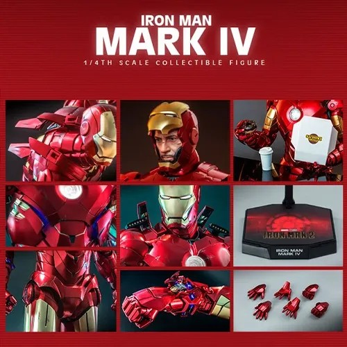 Hot Toys - Scale 1:4 Super Heroes: Marvel - Iron Man 2 - Iron Man Mark IV Figure with Suit-Up Gantry