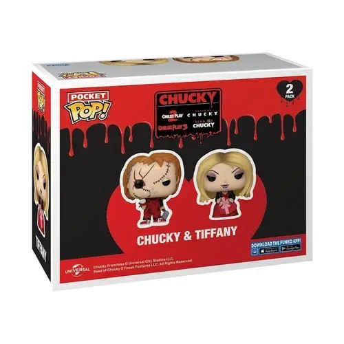 This Valentine''s Day, let horror meet romance with the Funko Pocket Pop! Chucky & Tiffany 2-Pack. Inspired by Bride of Chucky, this devilishly charming duo arrives in a blood-red box of love—and mischief. Featuring their iconic outfits with a Valentine’s twist, these mini figures bring slasher-style sweetness to any horror fan’s collection. Whether you''re gifting your sinister soulmate or expanding your horror shelf, Chucky and Tiffany are the perfect deadly duo to make hearts race.