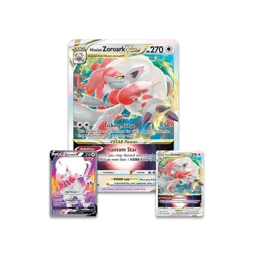 Nintendo - Games: Pokemon Trading Cards Game (TCG) - Hisuian Zoroark V Star Premium Collection (5 Pokemon booster packs,1 foil-etched promo card from Hisuian Zoroark VSTAR, 1 foil-etched promo card of Hisuian Zoroark V, 1 foil oversized promo card from Hisuian Zoroark VSTAR, 1 Pokémon Pin from Hisuian Zoroark, 1 plastic Pokémon VSTAR token, 1 code card for Pokémon TCG Live)